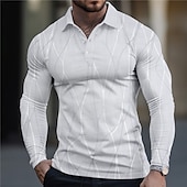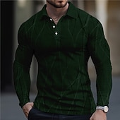 Men's Geometric Polo Shirts Golf Shirt Long Sleeve Polo Shirts Collared Shirts Business Casual WorkWear Formal Wear Festival Wear 3D Print Buttons Fall & Winter Black White Navy Blue 1