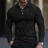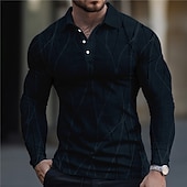 More information about Men's Geometric Polo Shirts Golf Shirt Long Sleeve Polo Shirts Collared Shirts Business Casual WorkWear Formal Wear Festival Wear 3D Print Buttons Fall & Winter Black White Navy Blue