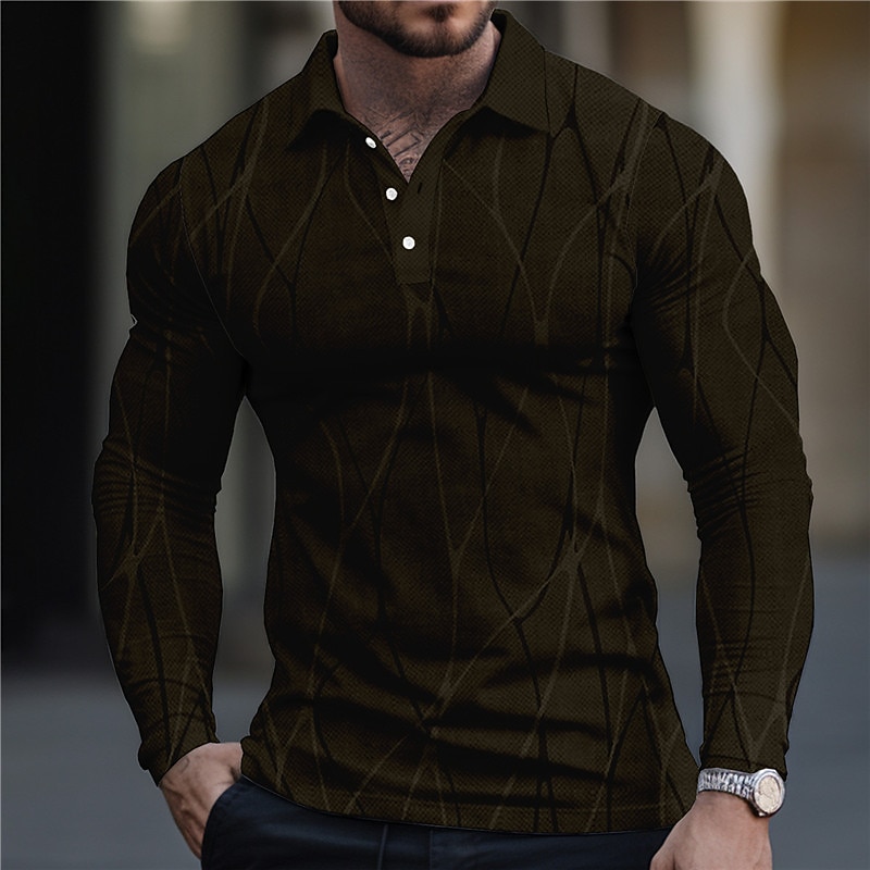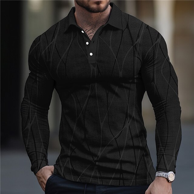 Men's Geometric Polo Shirts Golf Shirt Long Sleeve Polo Shirts Collared Shirts Business Casual WorkWear Formal Wear Festival Wear 3D Print Buttons Fall & Winter Black White Navy Blue 9