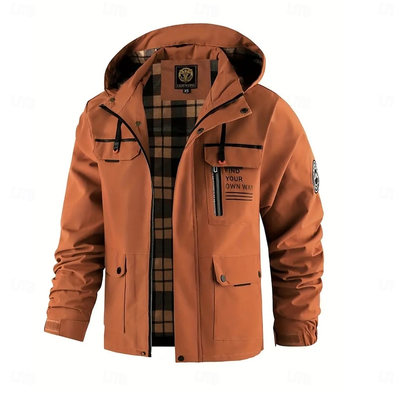 More information about Men's Winter Jacket Sport Coat Raincoat Hiking Jacket Outdoor Camping & Hiking Waterproof Windbreaker Zipper Pocket Fall Winter Solid Color Fashion Streetwear Hooded Regular Dark Red Yellow Light