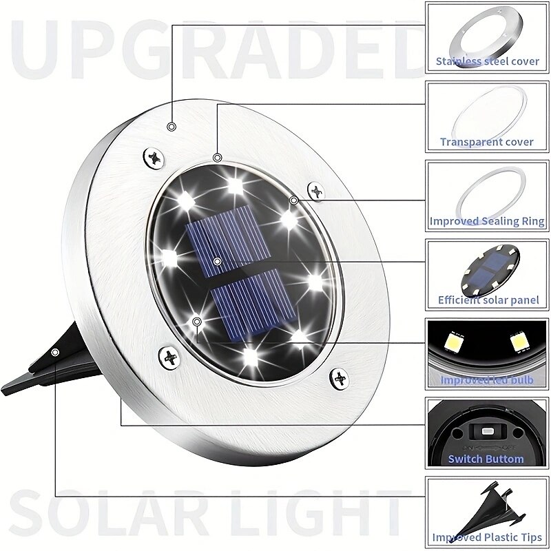 4PCS Outdoor Solar Buried Lamp 8LED Stainless Steel Lawn Road Lamp Courtyard Floor Insertion Lamp Garden Lamp 10