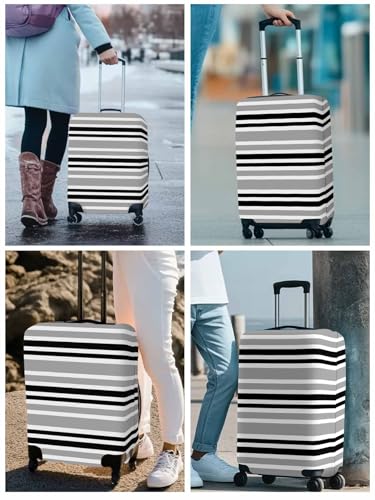 Black Gray Stripe Travel Luggage Cover, Minimalist Geometric Anti-scratch Elastic Luggage Covers For Suitcase Protector, Washable Baggage Covers 7