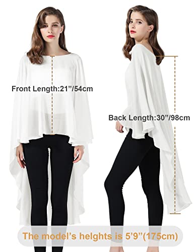 • FEMININE DESIGN & FIT PERFECTLY - This chiffon cape with high-low design in front and back , outline a slender figure, create a vogue translucent silhouette and flowy outfit look.