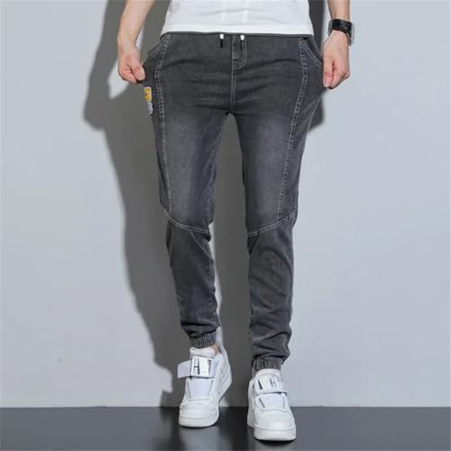 HOT ! Men Street Jeans Elastic High Waisted Lace Up Denim Pants Bound Trousers