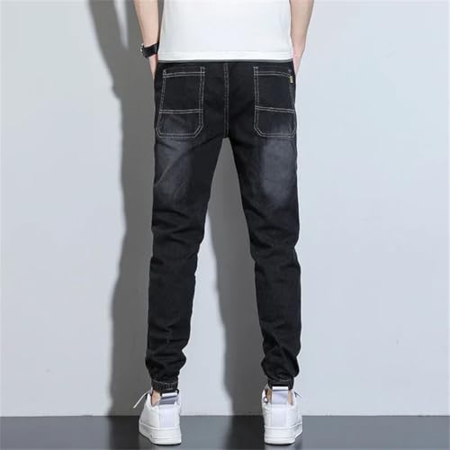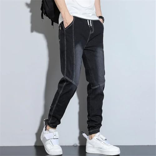 Men Street Jeans Elastic High Waisted Lace Up Denim Pants Bound Trousers 7
