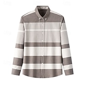 More information about Men's Oxford Shirt Light Khaki Light Grey Dark Grey Blue White Long Sleeve Color Block Button Down Collar School Wedding Color Block Clothing Apparel Neutral Fashion Daily