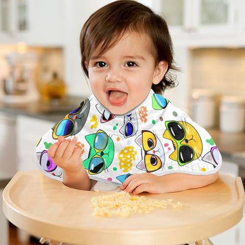 Burbuja Cartoon Cat Faces Wearing Sunglasses Muslin Baby Burp Cloths, Soft & Absorbent Cotton Burping Rags for Newborn Boys & Girls, 2 Pack 6