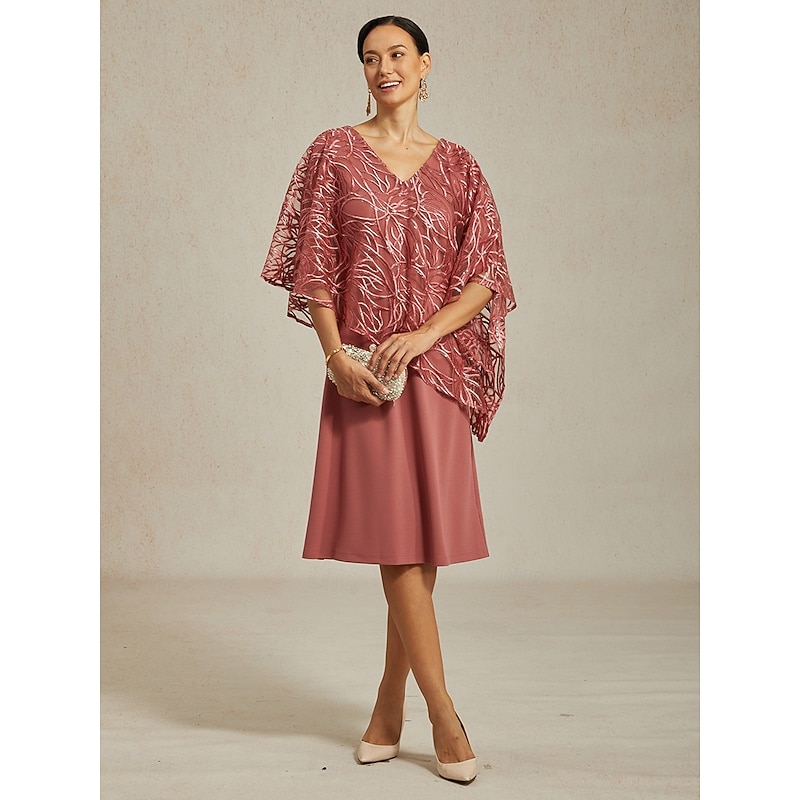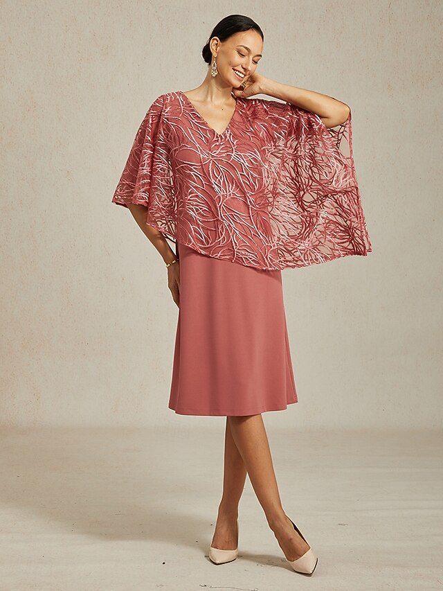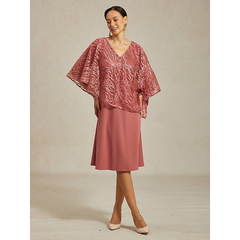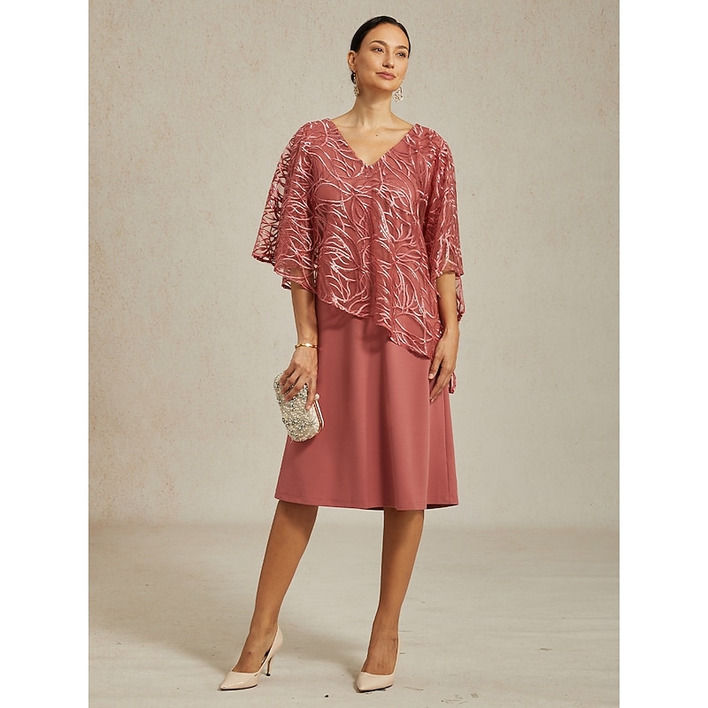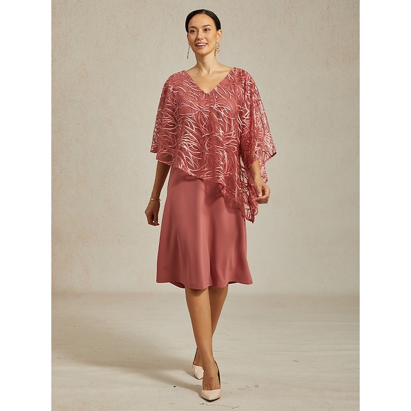 More information about Women's Tea Length Chiffon Dress Elegant Party Solid Color Half Sleeve V Neck Pink Summer Spring