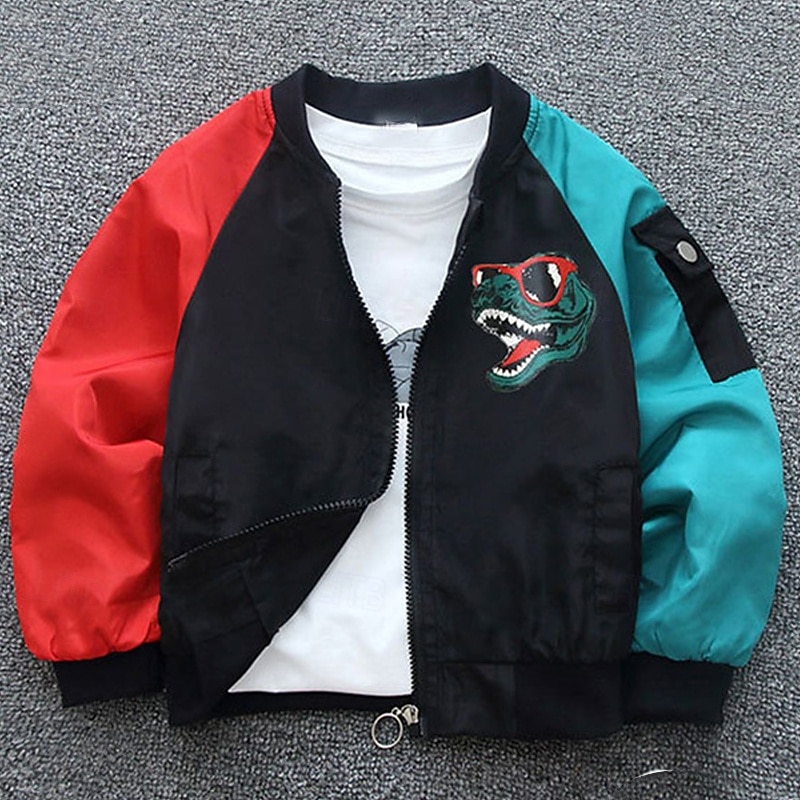 More information about Kids Unisex Baseball Jackets Outerwear Color Block Long Sleeve Zipper Lightweight Comfort Soft Coat Outdoor Fashion Daily Black Green Spring Fall 4 years+