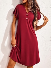 More information about Women's Mini Dress Casual Dress T Shirt Dress Tee Dress Stylish Basic Casual Vacation Daily Regular Fit Plain Short Sleeve V Neck Black Wine Summer