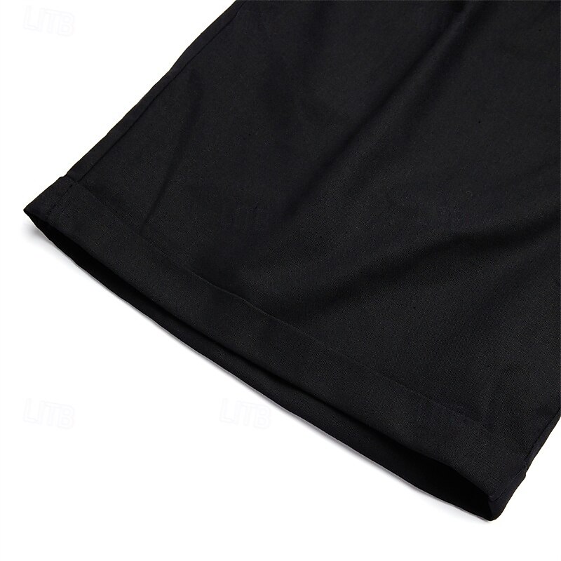 Men's Shorts Linen Shorts Dress Shorts Summer Shorts Beach Shorts Pocket Elastic Waist Straight Leg Plain Comfort Breathable Knee Length Casual Daily Holiday Fashion Streetwear Black White 6