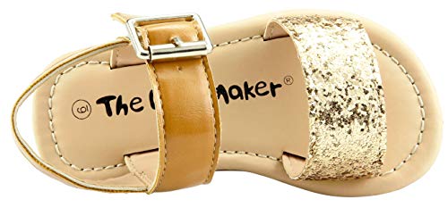 The Doll Maker Girl's Open Toe Glitter Sandal Flat for Little Kids 6