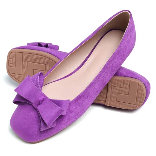 TN TANGNEST Women Square Toe Ballets Flats Slip On Casual Comfort Bowknot Dress Ballet Flat Shoes 6