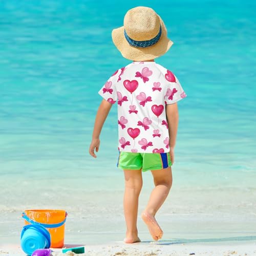 ALAZA Kids Rash Guard Girls Toddler Swim Shirts Short Sleeve Love Balloon UPF 50+ 3T 1