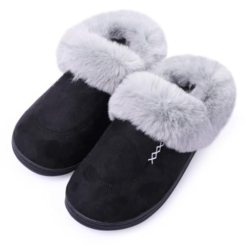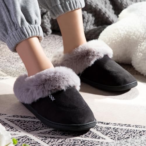 • 【Comfy Ladies House Slippers】- Trendy & Intimate faux fur collar feels like hugs on your feet. Extra comfort polar fleece insole not only confirms the warmth but wicks moisture away to keep your feet from stuffiness. Enjoy the cushy and fuzzy faux fur slides whether you are bare feet or wearing socks.