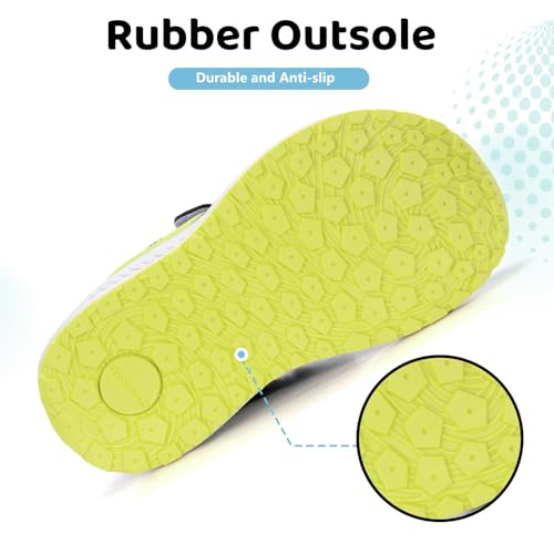 • 【Easy to wear and durable design】 Easy On/Off Hook-and-Loop Strap: Designed for kids' self-dressing independence. Reinforced toe cap and double-stitched seams extend shoe lifespan