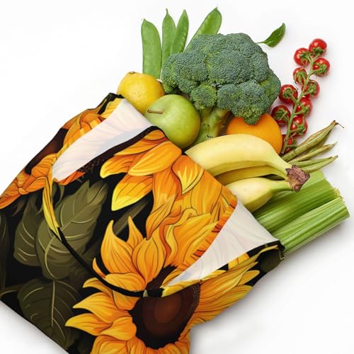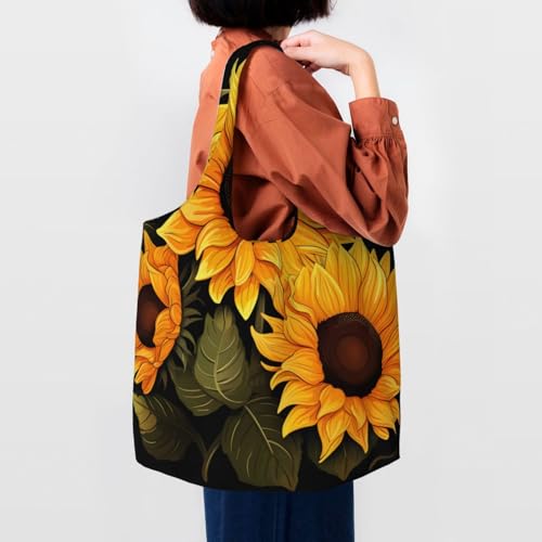 More information about (Sunflower Black Background) Large Tote Shoulder Bag Fashion Canvas Handbag Reusable Shopping Bag Travel Bag For Women