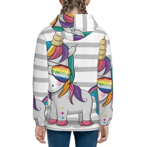 Cool Unicorn with Sunglasses Kids Pullover Hoodies Boys Zip Up Sweatshirts Girls Athletic Clothes with Pocket 5