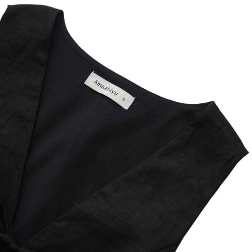 Amazhiyu Women's 100% Linen Summer Tie Front Sleeveless Crop Tops Casual Vest 6