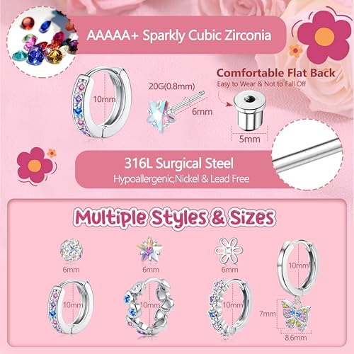 HOT ! Jstyle Earrings for Girls Hypoallergenic Hoops Earrings for Teens Surgical Stainless Steel Earrings for Little Girls Screw Back Studs Earrings for Toddlers Cute Earrings Jewelry for Kids