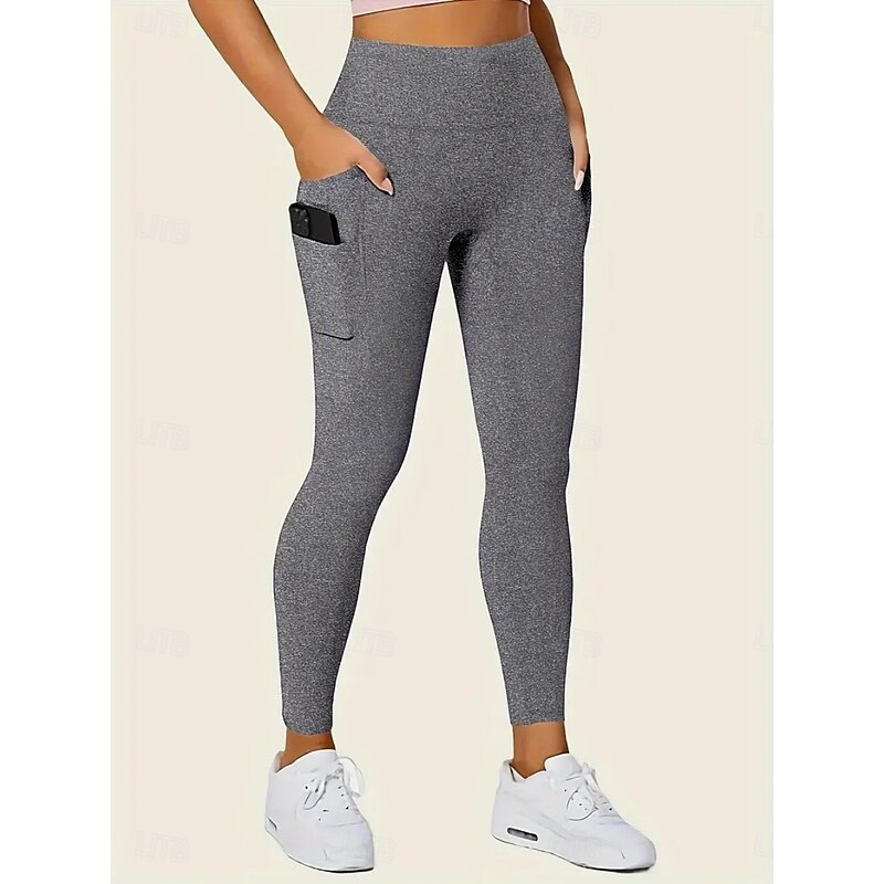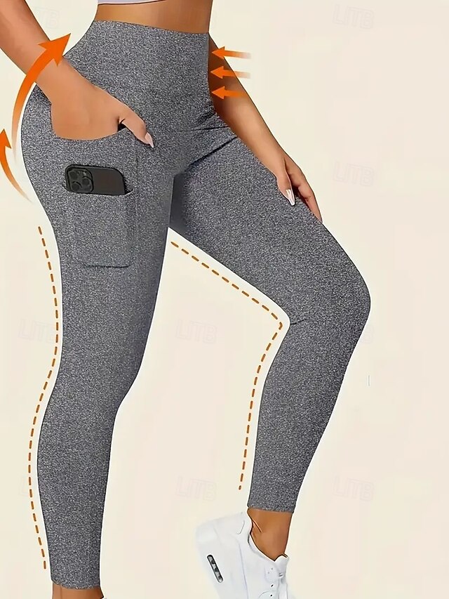 Women's Leggings Fashion Casual Full Length High Waist Solid Color Pocket High Cut Breathability Soft Comfortable High Elasticity Wine Navy Black Gray Fall Winter Slim Fit 22