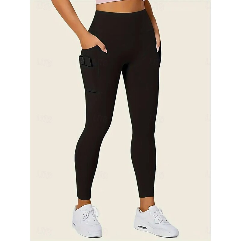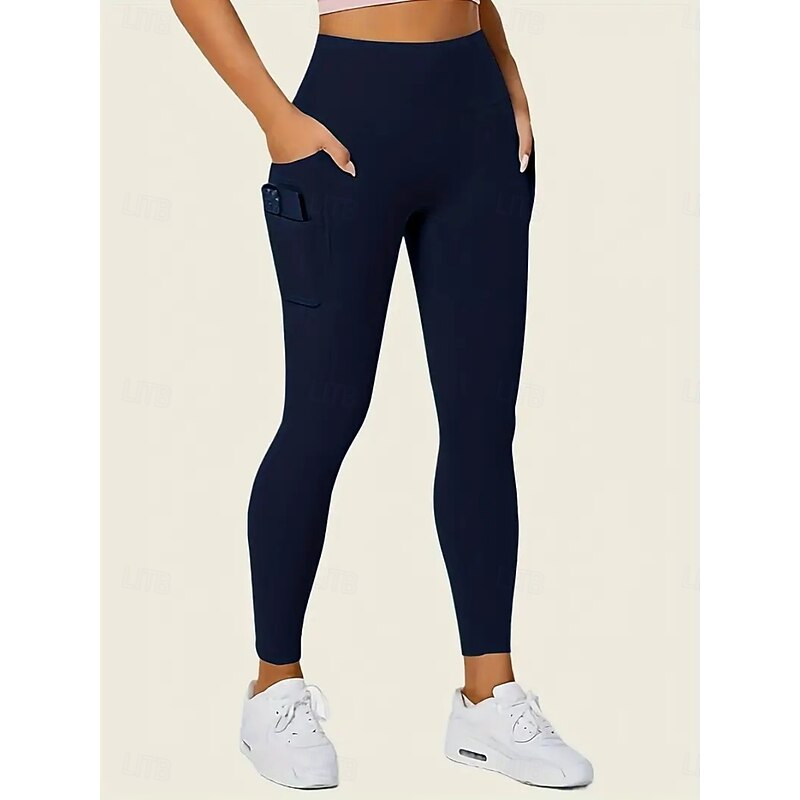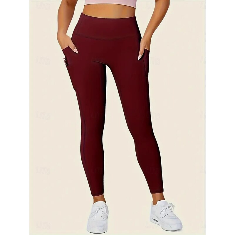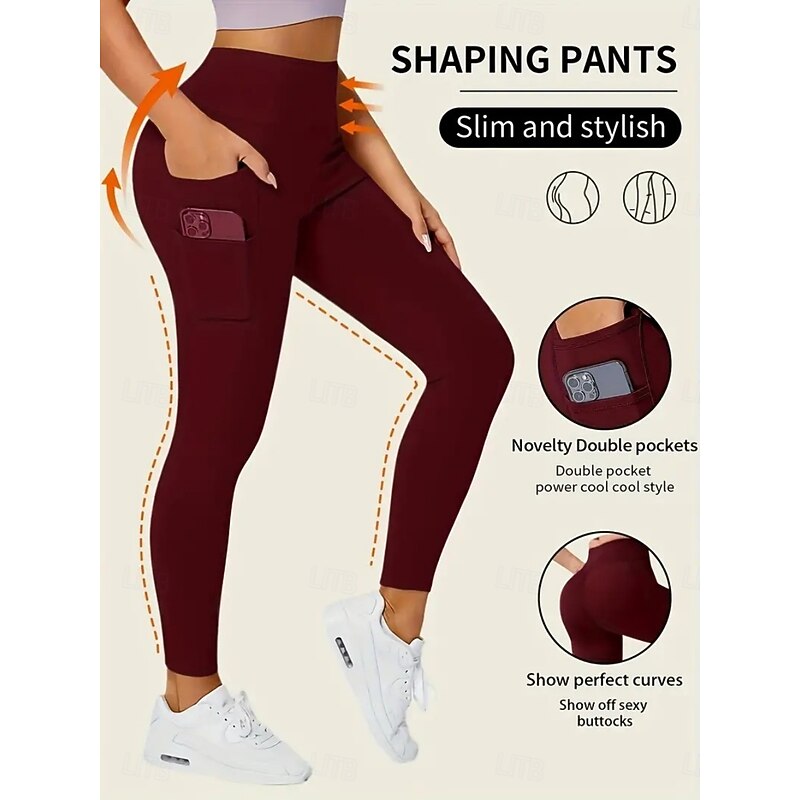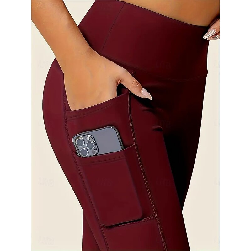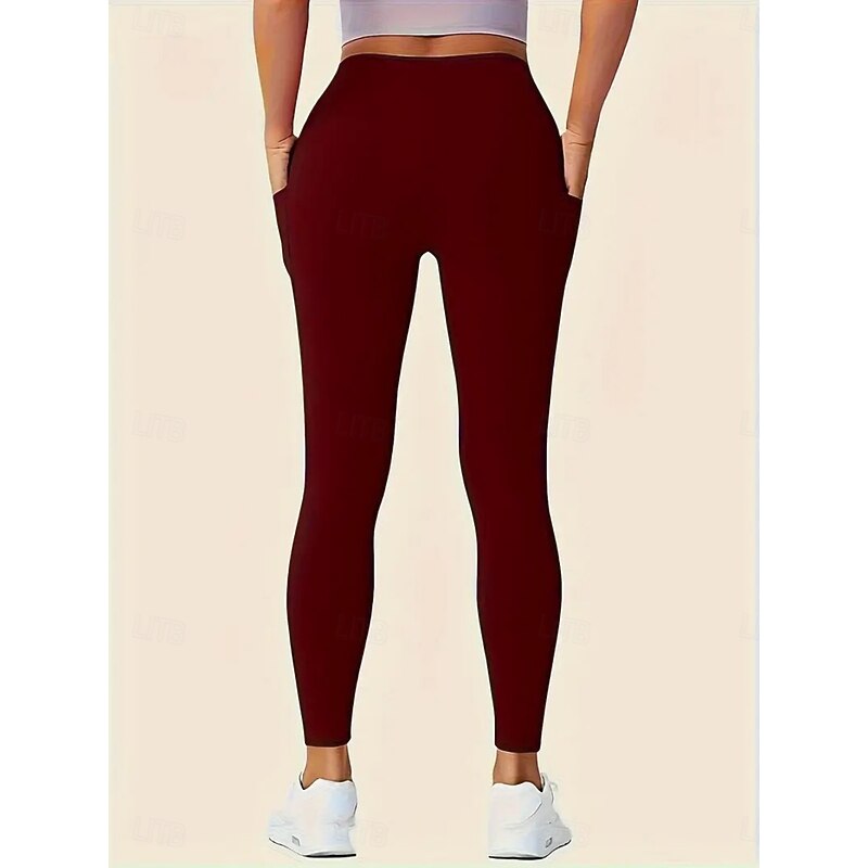 More information about Women's Leggings Fashion Casual Full Length High Waist Solid Color Pocket High Cut Breathability Soft Comfortable High Elasticity Wine Navy Black Gray Fall Winter Slim Fit