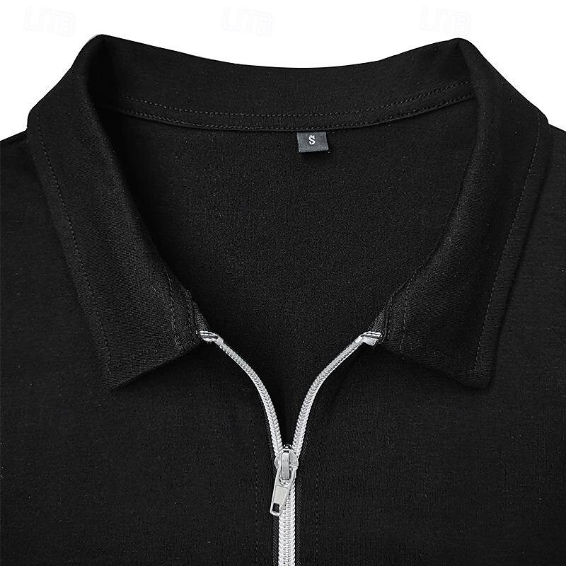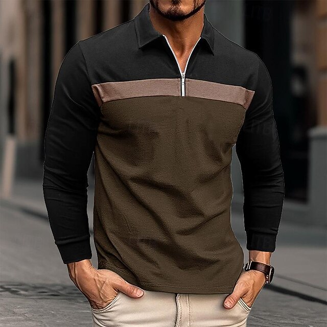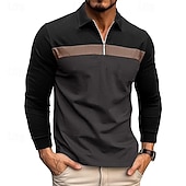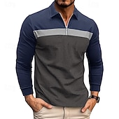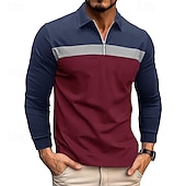 More information about Men's Quarter Zip Polo Cotton Polo Shirt Daily Holiday Quarter Zip Long Sleeve Fashion Modern Color Block Patchwork Spring & Fall Regular Fit White Wine Royal Blue Dark Grey Army Green Gray Quarter
