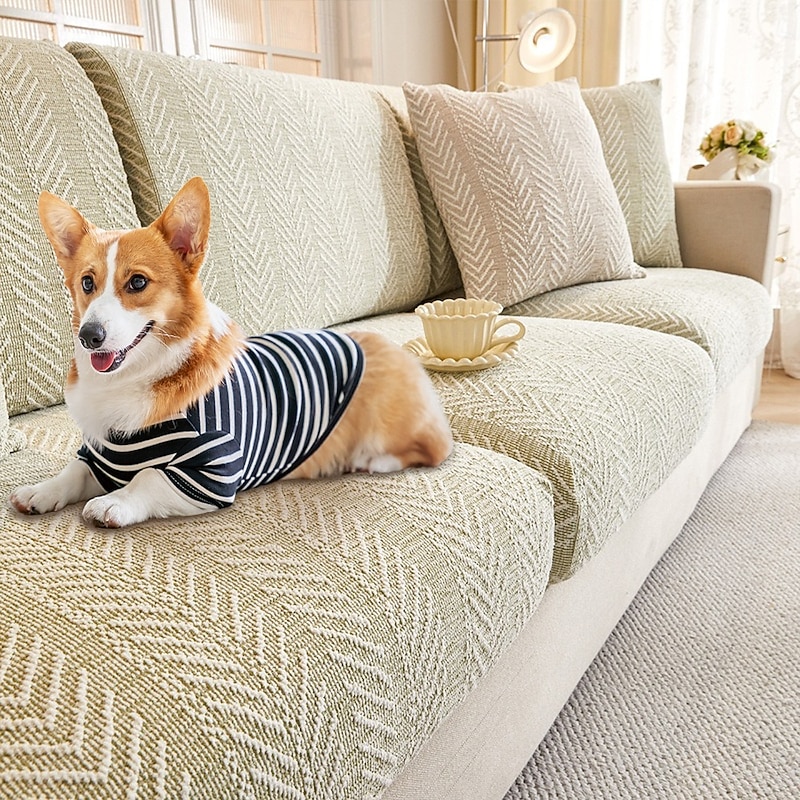 Chenille Herringbone Sofa Cover For Dog Anti-Slip Magic Couch Cover Pet Friendly 1