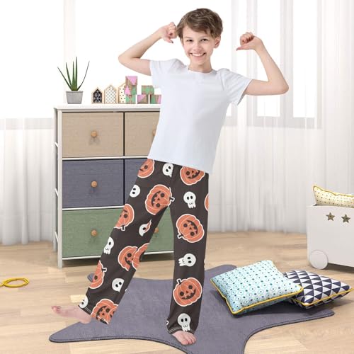 HOT ! Pumpkin Skeleton Boys Pants Boys Athletic Pants Long Pant for Boywith Pockets Wide-Leg Size 6-14Y
