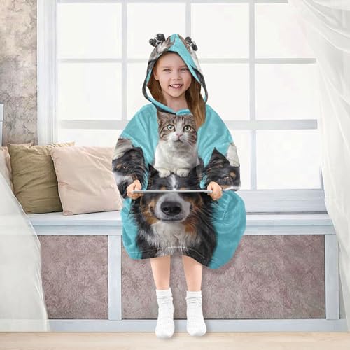 More information about Orange Cat Blue Kids Wearable Blankets Teen Girls Sweater Animal 3D Print Toddler Boys Oversized Sweatshirt Hoodie