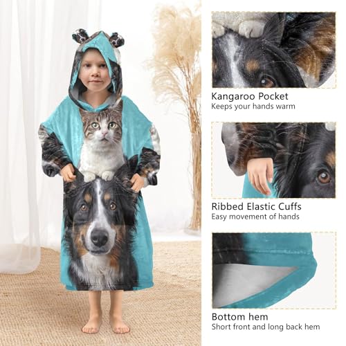 Orange Cat Blue Kids Wearable Blankets Teen Girls Sweater Animal 3D Print Toddler Boys Oversized Sweatshirt Hoodie 4