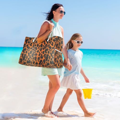 HOT ! Orange Black Animal Print Sturdy Washable Tote Bag with side pocketes Bags And Totes for Travel Gym Vacation