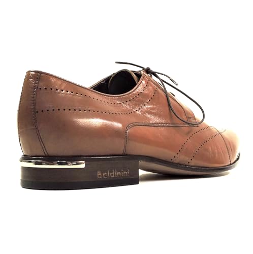 Baldinini Men's Leather Oxford Dress Shoes, Soft Brown, Perforated Design 7