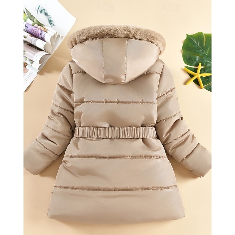 Kids Girls' Down Coat Solid Color Fashion Zipper Pocket School Coat Outerwear 4-12 Years Winter Black Pink Navy Blue 17