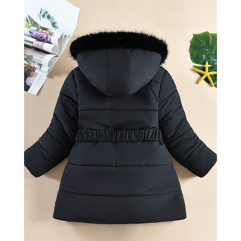 Kids Girls' Down Coat Solid Color Fashion Zipper Pocket School Coat Outerwear 4-12 Years Winter Black Pink Navy Blue 23