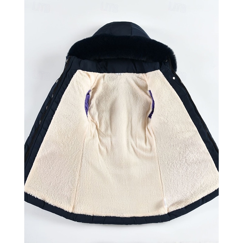 More information about Kids Girls' Down Coat Solid Color Fashion Zipper Pocket School Coat Outerwear 4-12 Years Winter Black Pink Navy Blue