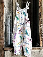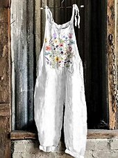 More information about Women's Overalls Vacation Vintage Ethnic Style Full Length High Waist Floral Graphic Animal Drawstring Inelastic Formal Vacation Street Yellow Pink Green Summer Spring Fall Loose Fit