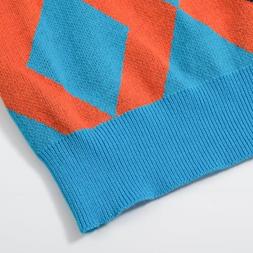 Retro Knitted Polo Shirts for Men, 1960s Geometric Pattern Short Sleeve with Quarter Button, Orange Blue 6