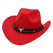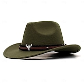 Highlights [Fabric] : Crafted from a blend of high-quality cotton and polyester, this cowboy hat ensures both comfort and durability. Its felt-like texture provides a soft touch, making it suitable for all seasons. [Fit] : Designed with a structured fit, the hat features a wide brim for excellent sun protection and a classic pinched crown, offering a nod to traditional western style. The hat is designed to fit most with a size range of 56-58cm. [Design Highlights] : This vintage-style Fedora Trilby cowboy hat is adorned with a decorative brown strap around the base of the crown, embellished with metallic accents. A standout feature is the metallic bull head ornament, which enhances its rugged, western aesthetic and adds authenticity to its vintage charm. [Occasions] : Perfect for daily use, theme parties, and cosplay events, this hat seamlessly complements western-themed outfits and outdoor adventures alike. Whether you're dressing up for a State of Texas-themed party or heading out for a casual day in the sun, this hat adds a touch of vintage flair to your ensemble. [Size] : Available in one size, the hat is designed to comfortably fit head sizes within the 56-58cm range, accommodating a variety of wearers.