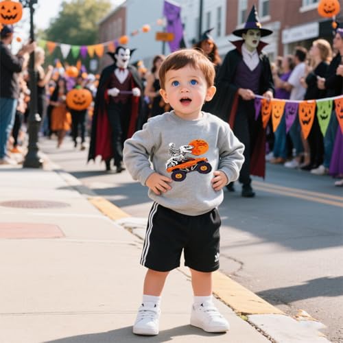 Kids Halloween Sweatshirt Toddler Boys Girls Pumpkin Bat Dinosaur Monster truck Graphic Crewneck Pullover Shirt 2-7t 5