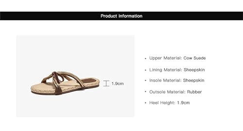 Women's Cow Suede Cross-Tied Slippers - Rivet Bowknot Mixed Color Summer Flats 6