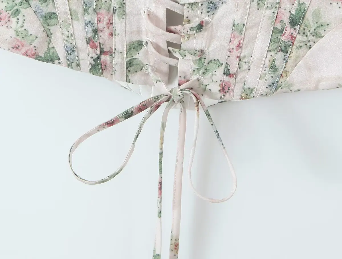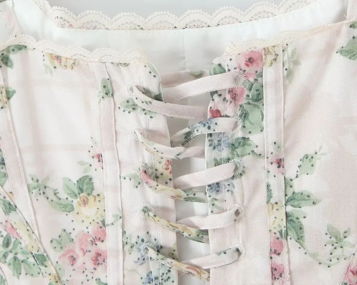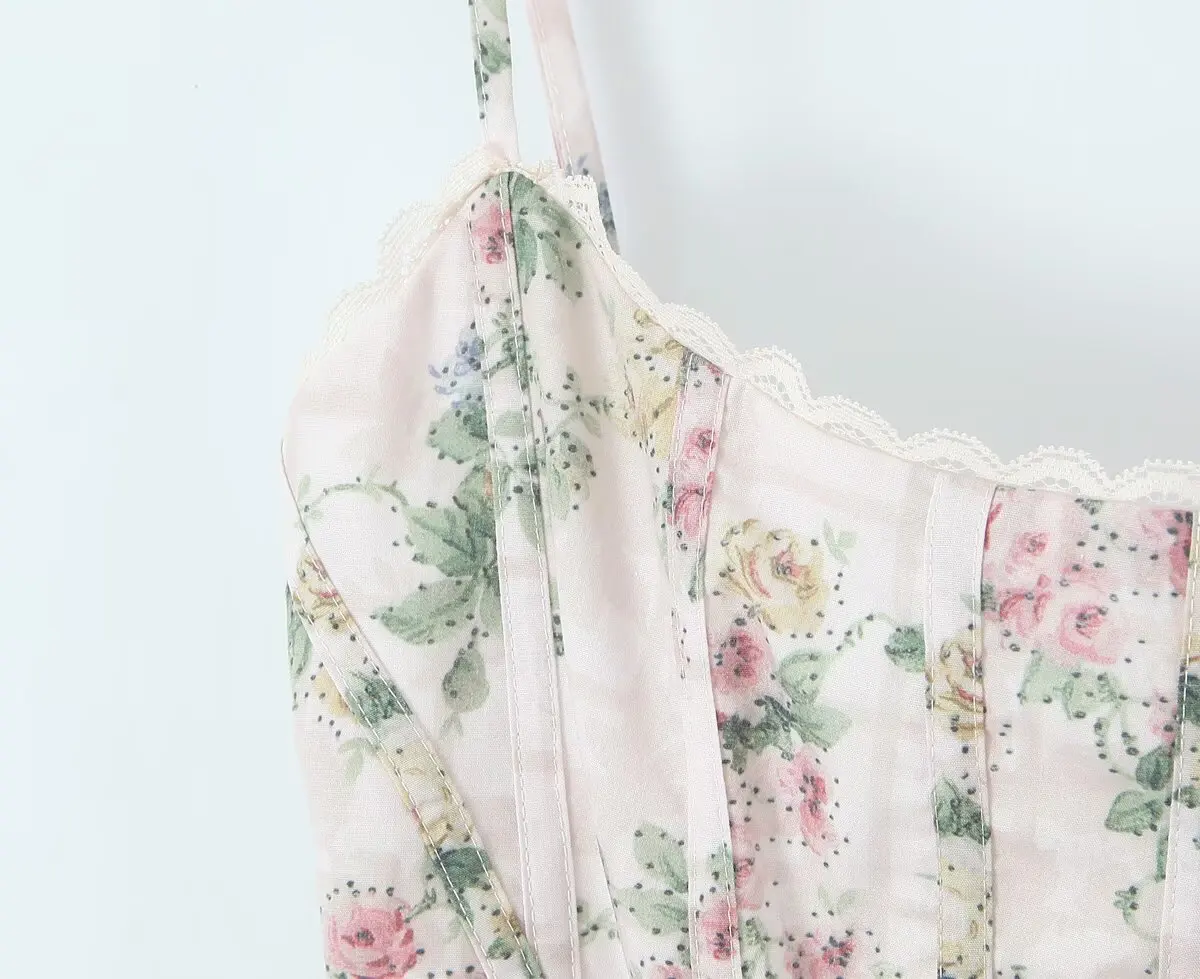 Sexy Bandage Back Floral Print Camisole Women Lace Spliced Fit Slim Holiday Summer