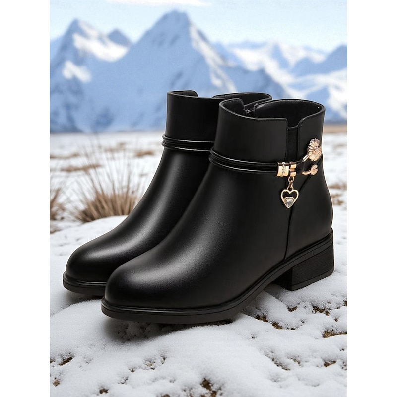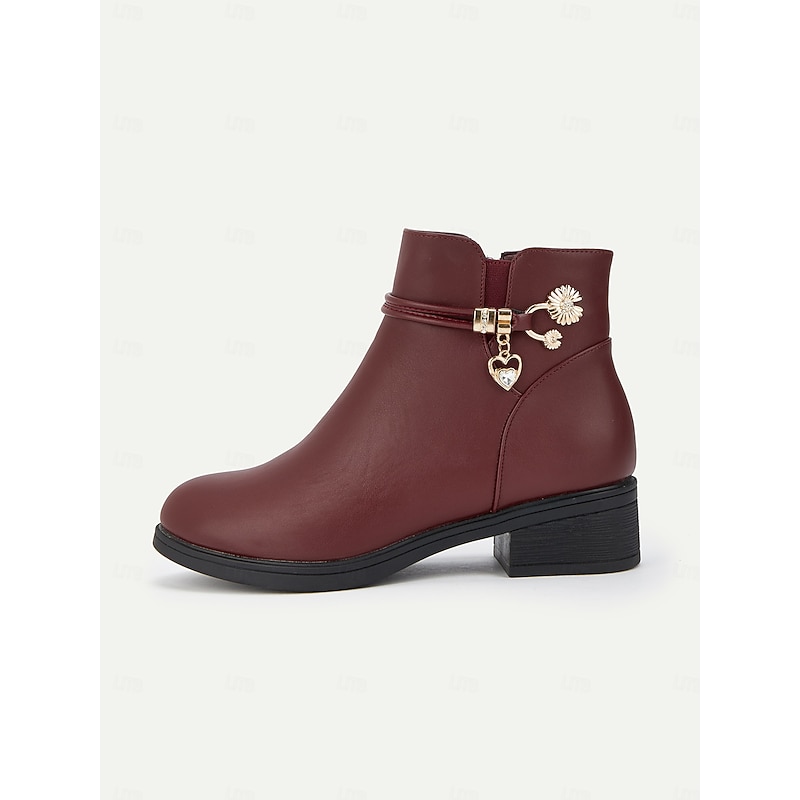 More information about Women's Warm Fur-Lined Ankle Boots - Burgundy Low Heel Winter Booties with Gold Charm Details for Snow,Outdoor Travel and Cold Weather Commute