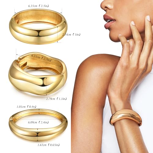 RIOSO Gold Chunky Bracelets for Women Bangles Thick Cuff Big Large Statement Set Women's Gold Bangle Chunky Bracelet 3