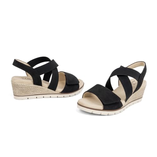 • Stylish: The classic yet chic cross strap design of our women’s summer sandals adds a sense of fashion. The cute wedge sandals with round toe can easily pair with dresses, skirts, capris, shorts, T-shirts, pants, leggings and so on to create a chic or daily looking