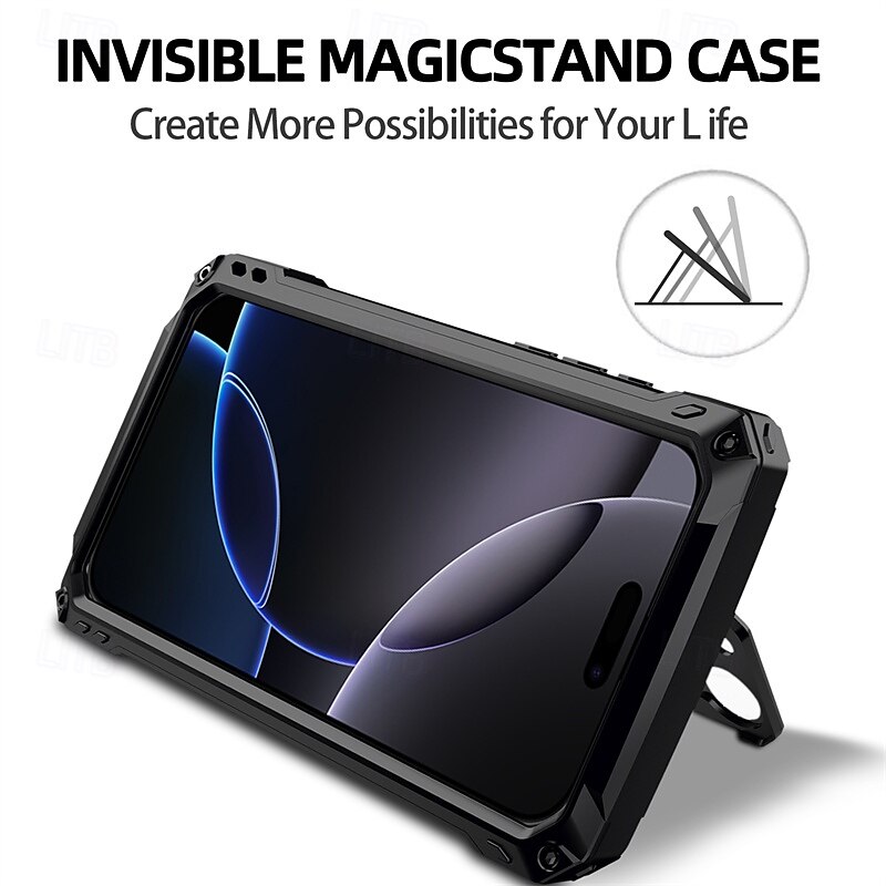 More information about Phone Case For iPhone 16 15 14 Pro Max Plus 16e Magnetic Adsorption with Stand Holder Support Wireless Charging Shockproof Retro Aluminum Alloy Tempered Glass Silicone