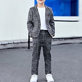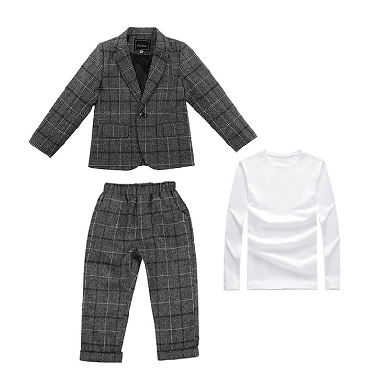 More information about 3 Pieces Ring Bearer Suit Boys Kids Suit Formal Suit Suit & Blazer Clothing Set School Party Street Basic Formal Gentle Plaid Gray Polyester