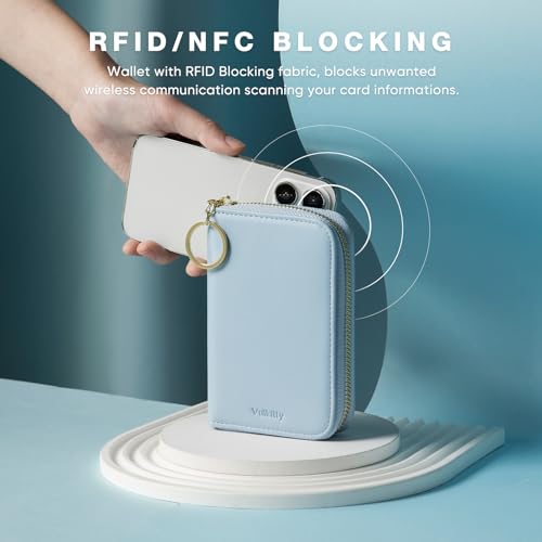 Wallet Women Zipper Bifold Small Leather Card Holder Wallet RFID Blocking with ID Window and Coin Pocket Blue 7