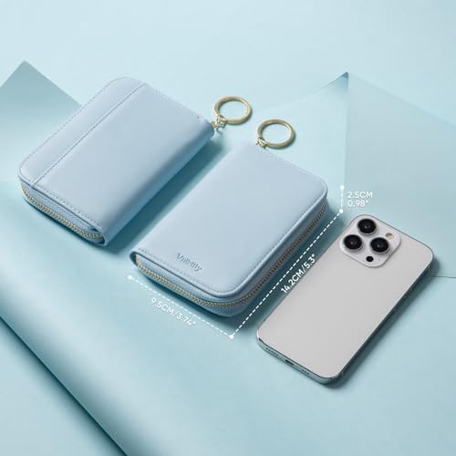 Wallet Women Zipper Bifold Small Leather Card Holder Wallet RFID Blocking with ID Window and Coin Pocket Blue 1