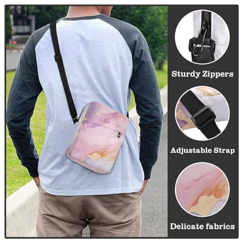 Crossbody Bag Pink Purple Gold Marble Messenger Bag for Women Men Purse Shoulder Bag Satchel Bag with Adjustable Strap 214B3667 6
